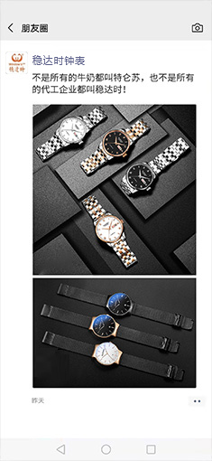 不同材質,不同工藝,不同質量的原材,價格最后都不一樣;穩(wěn)達時每只表精細選材,原裝進口機芯品質保證,先打樣后做貨、保障產品品質;我們始終堅信一分錢一分貨,從源頭把控產高品質,確保打磨出來的每一只表都是精品。